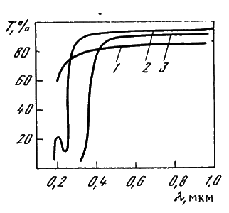 Рис. 5.3. Спектральные зависимости у коэффициента пропускания пластин , (l = 1 мм) до облучения