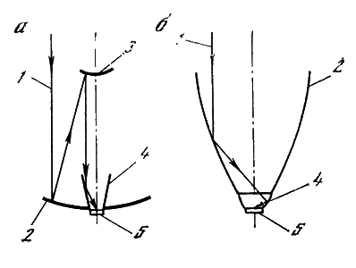 Рис. 5.11. Двухступенчатые концентраторы типа Кассегрена (а) и Баранова — Уинстона (б)