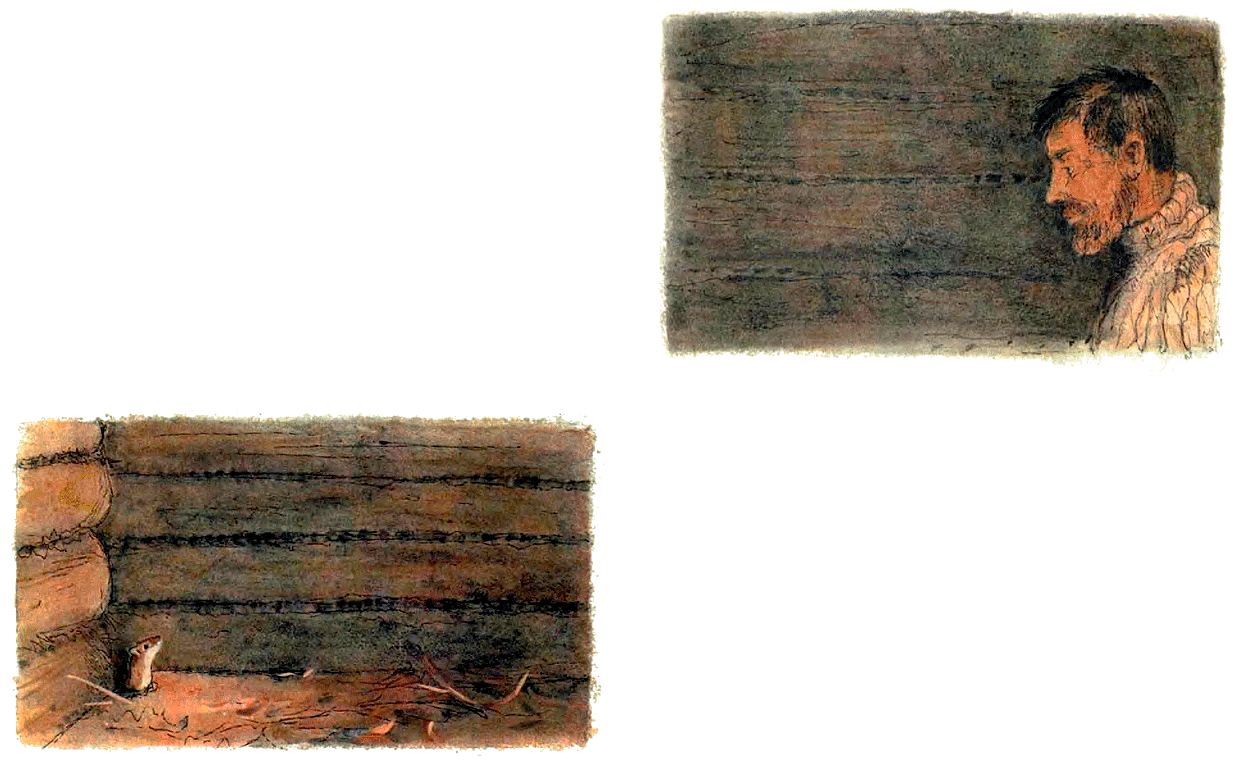 Я поселился в зимовье — маленькой бревенчатой избушке. Она хоть и маленькая, а на каждой охотничьей и лётной карте обозначена, чтобы знали, если кто заблудится. Здесь всегда можно заночевать, обогреться и поесть. Каждый тут что-нибудь оставляет для тех, кто придёт после него: спички, соль, крупу, сало, сухари. Люди должны заботиться друг о друге: иначе что ж получится?