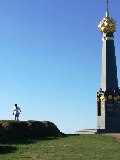 Рис. 36. Батарея Раевского на фоне Стелы. 09.2018. Фигурка — я.