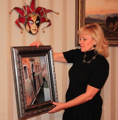 Рис. 4. Ирина с картиной О. Рыбаковой «Венеция», купили за 30.000.
