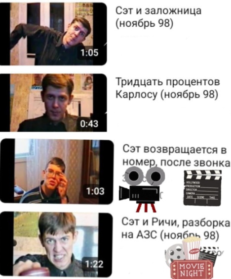 Рис. 23. Ролики, где с братом обыгрываем сценки из к/ф «От заката до рассвета». Мне – 22 года.