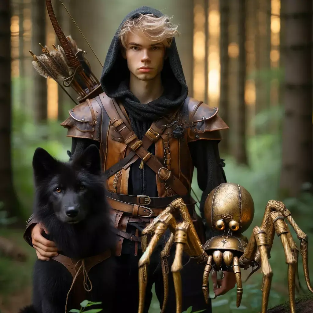 Выкладываю еще одну картинку с гг и питомцами по версии нейросетей ;)