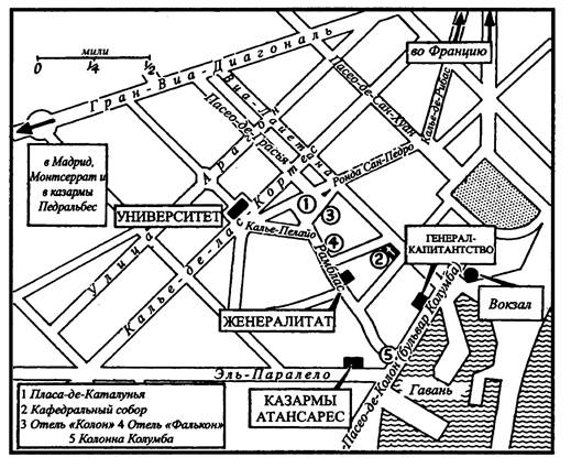 Мятеж в Барселоне должен был начаться в восемь утра, но мятежники не сумели вовремя нейтрализовать преданных правительству офицеров, поэтому первые колонны солдат, которым объявили, что они идут подавлять мятеж анархистов, под командованием полковника Лопеса-Амора выдвинулись в сторону площади Каталунья только в одиннадцать часов. Время оказалось катастрофически упущенным, но этого пока что никто не сознавал. Хорошо, что солидную порцию бренди солдатам раздали быстро и оперативно. Согласно планам путчистов, три колонны — две пехотные и одна артиллерийская направились в центр города. Но к сердцу города — площади Каталунья добрались далеко не все и далеко не сразу. Хуже всего ситуация сложилась для артиллерийской колонны. Фактически, путчисты получили в свое распоряжение полубатарею трехдюймовок и весь штаб артиллерийской бригады, то есть множество бесполезных без пушек офицеров. Основная колонна была остановлена народом, окружена, а после присоединения к толпе гвардейцев и вооруженных до зубов милицианос солдатики как-то быстро передумали сражаться против народа и даже согласились свои пушки повернуть против своих же офицеров, дабы им, сволочам, не повадно было!