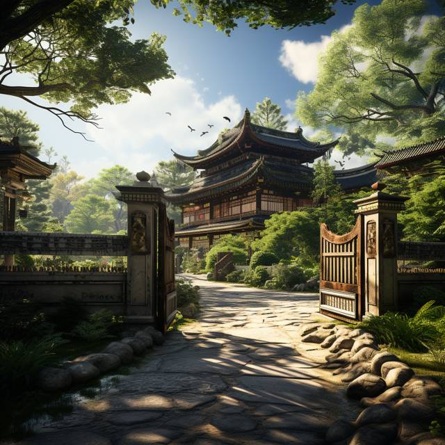 Ну, что я могу сказать об этой поездке? Мне показалось, что кортеж попал в другой мир — мир пяти-семиэтажных домиков, примыкающих друг к другу, крошечных магазинчиков, умопомрачительного количества кафешек, высокотехнологичных многоуровневых автостоянок и заправок, небольших тенистых парков, очень назойливой рекламы и информационных указателей с иероглифами. Здорово удивило отсутствие тротуаров на улицах и в переулках, примыкавших к дороге, по которой мы ехали. Приятно порадовали чистота и аккуратно подстриженная зелень. Шокировало засилье велосипедов, стоящих чуть ли не у каждого столба, и переизбыток туристов из Китая, попадавшихся на глаза в среднем раз в три-четыре минуты. А вот европейских лиц я так ни разу и не увидел, хотя знал, что наших в Японии должно быть немерено. Не увидел и арабов, и соотечественников Эиру. Впрочем, вполне возможно, что не повезло с районом, направлением движения и расстоянием до нужной окраины — проехав километров двенадцать, мы вырвались в очень красивые предгорья, чуть-чуть ускорились, пролетели еще пять с половиной и, миновав буддийский храм Кацуо-дзи, построенном, вроде как, за триста с лишним лет до Обретения Великих Даров, влетели в нужный поселок городского типа. А минуты через две с половиной повернули налево, заехали на довольно крутой подъем и уперлись в ворота поместья Шоичи Сакураи.
