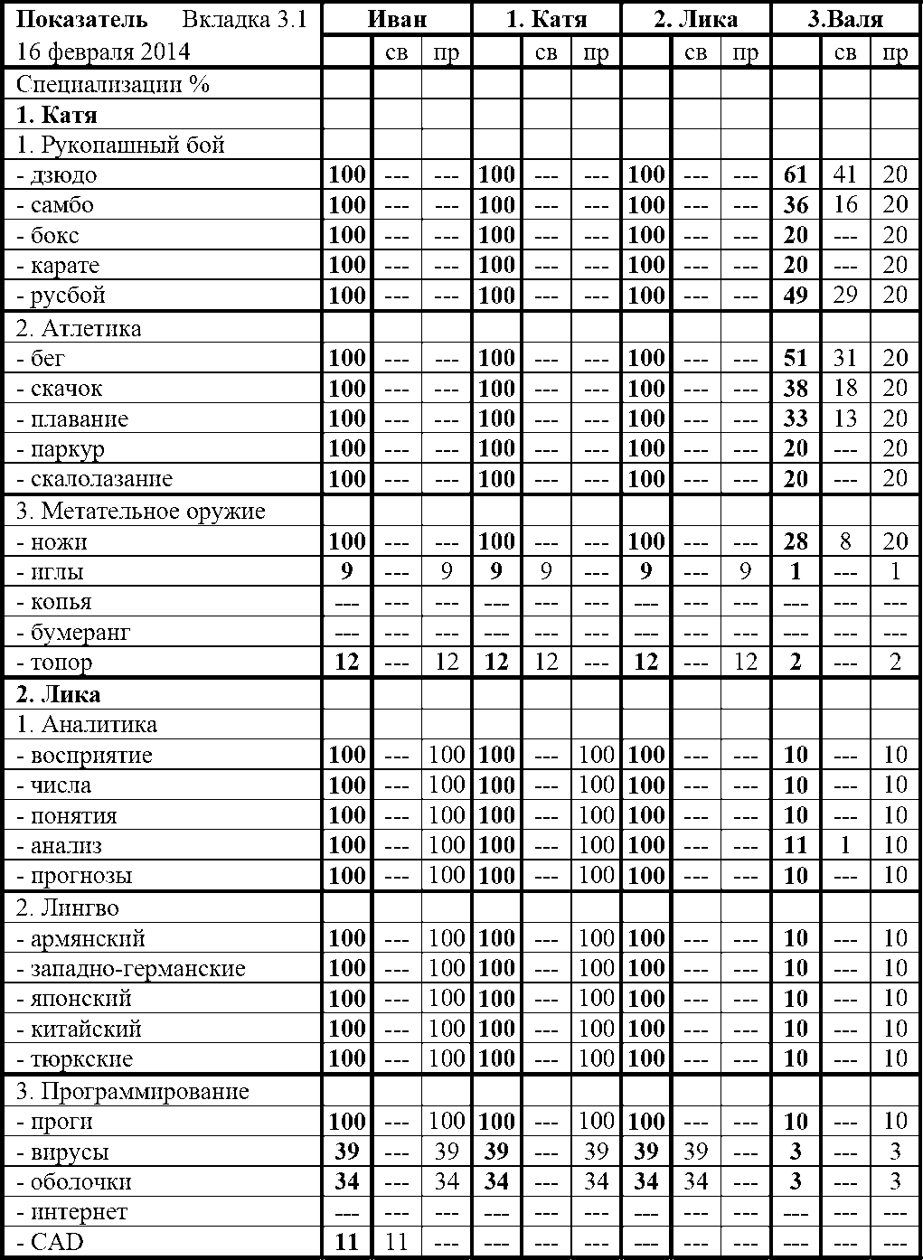 – Твою дивизию! Перед тем, как жёлтый начнёт назначать новые Навыки, нужно вкурить, что он наваял в моей второй Спецухе, - с усмешкой высказалась Валя.