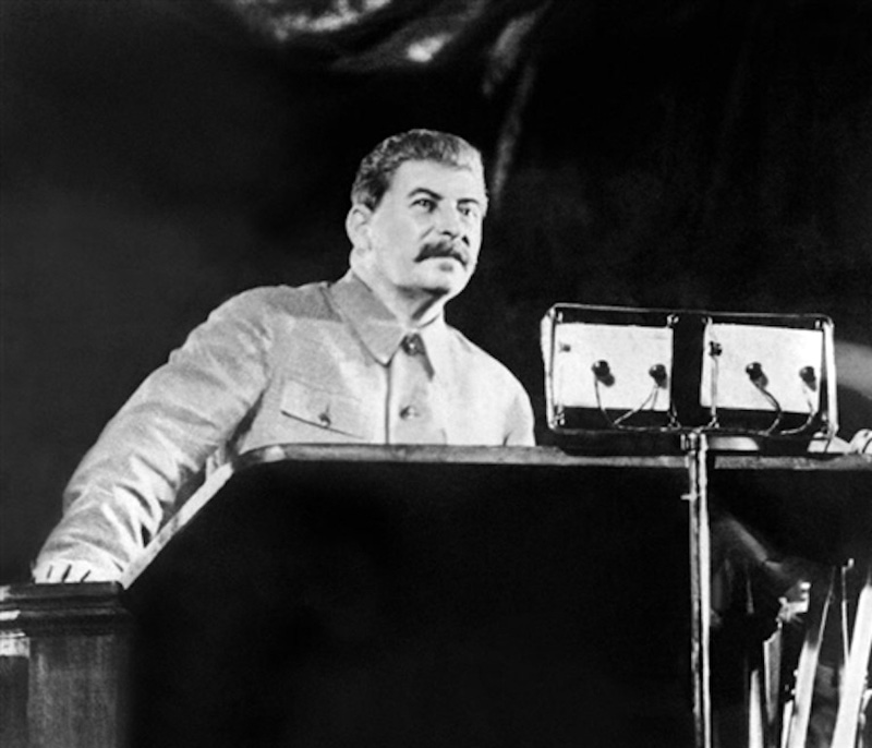 (Тишина, товарищ И.В. Сталин долго молча смотрит в зал).