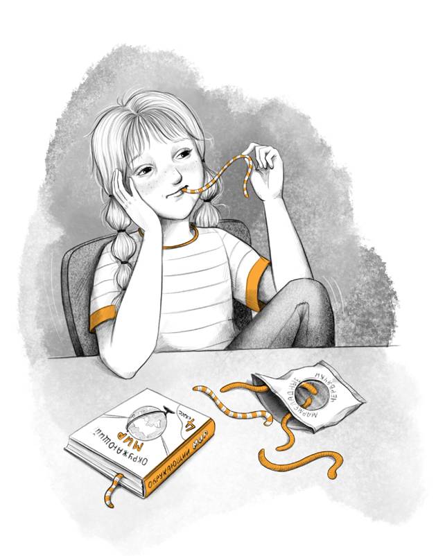 Вера совсем разволновалась. Но успокоительных червяков больше не было. Она заменила их тремя мятными леденцами и задумалась. Если её не спросят завтра, а спросят на следующем уроке, в пятницу, это будет полная катастрофа. Она столько времени угробила сегодня на эту «окружайку»! Что же, ещё и четверг на это тратить? Нет, лучше уж сразу выучить и на пятницу, всё равно вечер потерян.