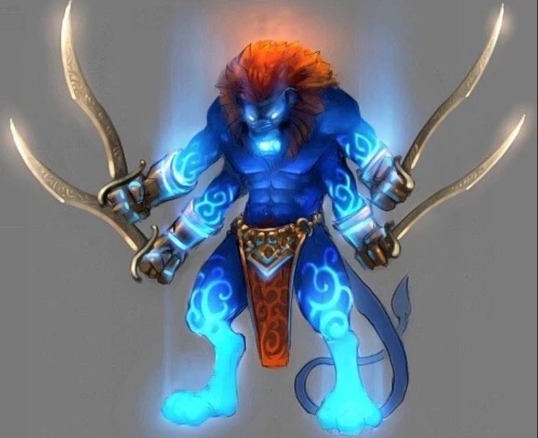 Я когда это услышал, то чуть воздухом не подавился. Но ведущий урок истории Киранель лишь создал передо мной иллюзию, в которой огромный синий трехметровый антропоморфный лев, с четырьмя ятаганами, со скоростью ветра бежит на ровный строй гремлинов, которые безостановочно стреляют по нему, а тот лишь отмахивается, лишь изредка получая раны. То что началось после того, как раджа достиг строя ангел мне не показал, но я сам понял что многие гремлины после этого лишись головы.