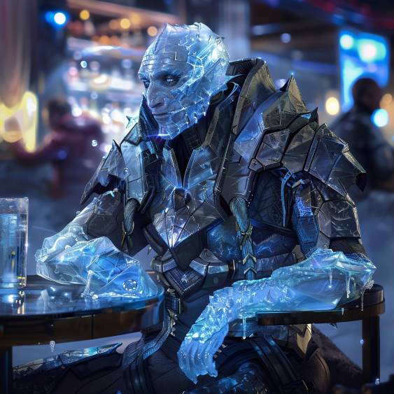 Собеседник проводит по краю бокала пальцем, и тот за удар сердца покрывается сеткой льда, а затем трескается.