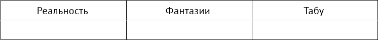 Теперь задача заключается в том, чтобы из двух таблиц сделать одну – семейную сексуальную «Общую реальность», «Общие фантазии» и «Общее табу».