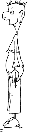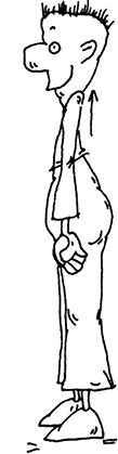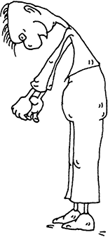 Плечи – вперед, руки прямые, внизу сцеплены в замок. Подбородок прижат к груди.