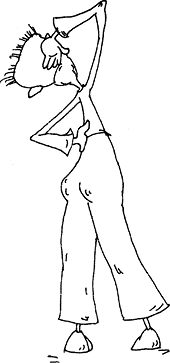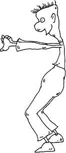 Ноги на ширине плеч, полусогнуты в коленях, таз – вперед, верхняя часть туловища неподвижна.