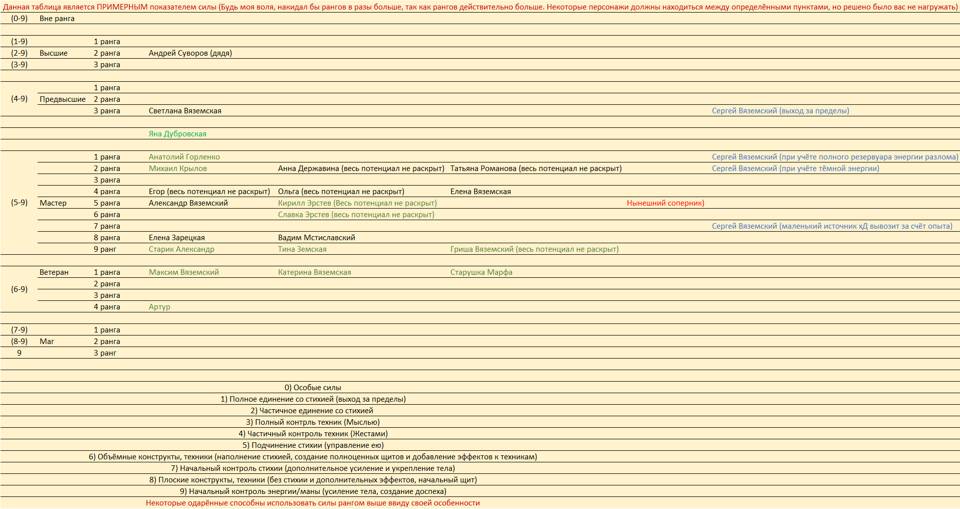 Как и написал в таблице — это лишь примерные уровни сил тех, с кем связан ГГ. В дальнейшем я расширю таблицу оставшимися героями.