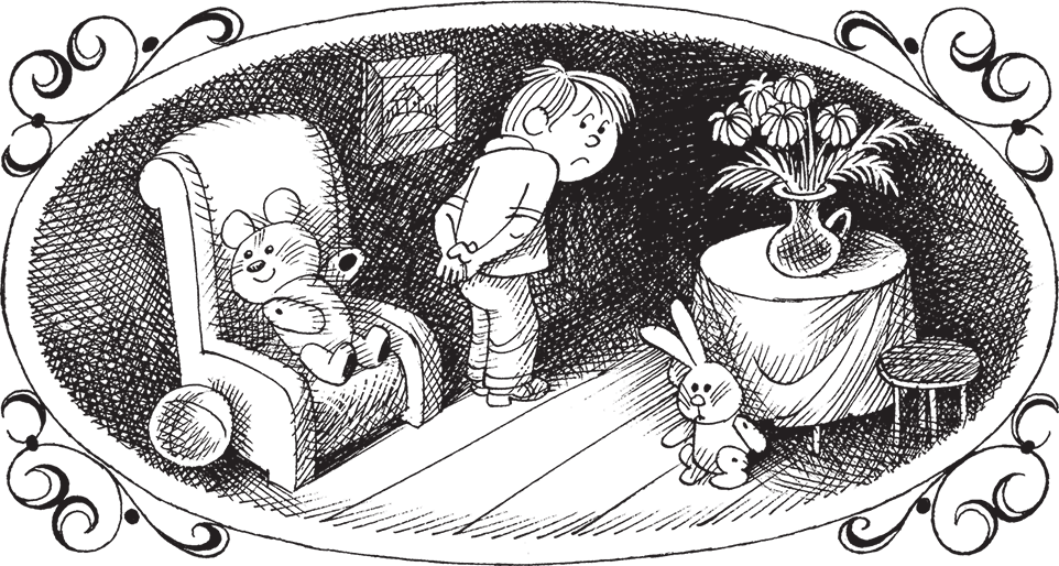 Так они дошли до своего дома, поднялись на верхний этаж и вошли в квартиру. Здесь мама провела Малыша в маленькую комнату, поставила носом в угол и строго сказала: