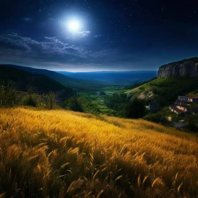 Простираются бескрайние поля с золотистыми колосьями пшеницы, пахнущие свежими травами и цветами. В ночи — запах особенно ярко освежает и заметен. Вдалеке виднеются горные вершины, увитые пышной зеленью лесов и кустарников.
