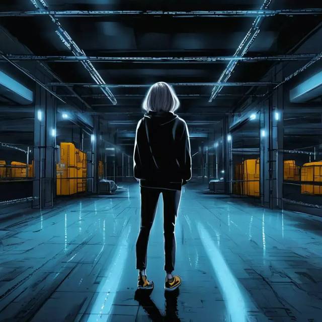 Стоящая на одном месте беспрерывно машущая девушка помаленьку обрастает деталями и глубиной. Пепельные короткие волосы, прикрывающие глаза челкой, лакированные черные ногти, черные обрезанные в пальцах перчатки. Жует жвачку, надувая розовые пузыри. Худи, мешковатые штаны, желтые кеды.