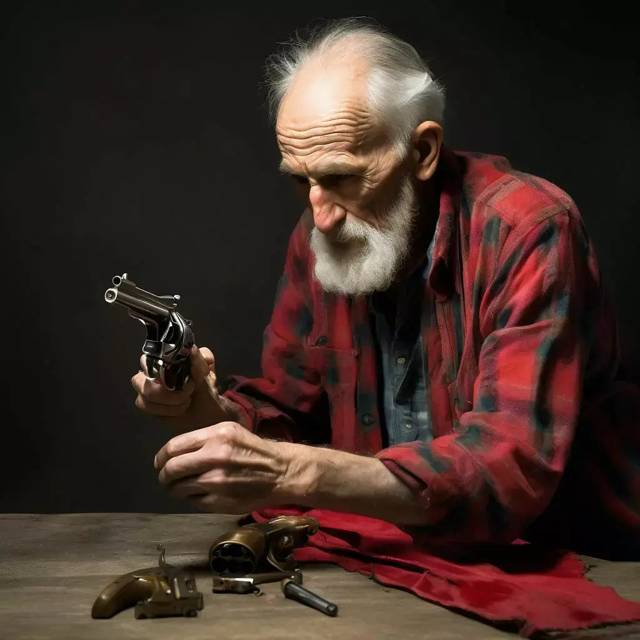 Ресницы лениво разлепились. Напротив меня старик в расстегнутой у шеи клетчатой рубашке протирал увесистый блестящий револьвер красной тряпкой.