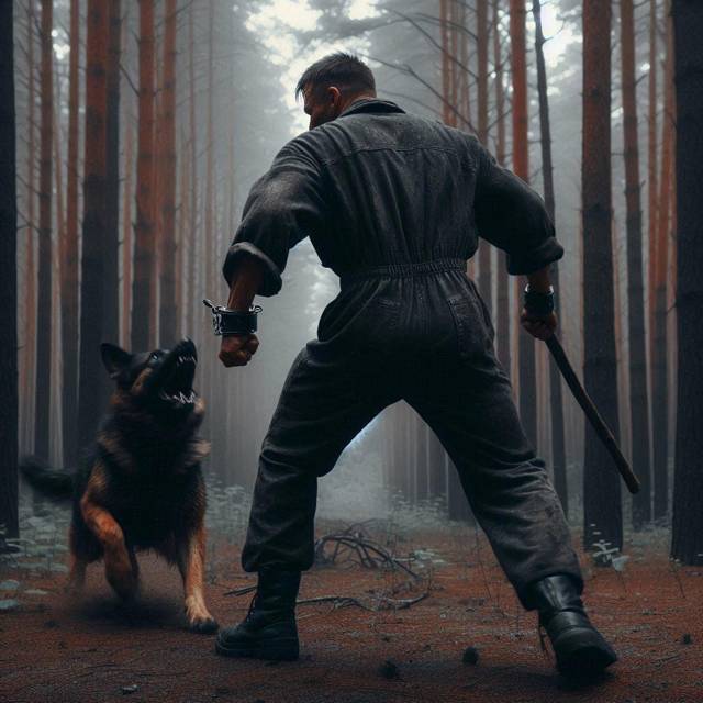 Секунду я ориентировался, соображая, куда бежать, подхватил лежащую в траве толстую ветку и припустил в сторону заходящего солнца. Далеко не убежал, первая овчарка появилась спустя несколько секунд, я только и успел обломать лишние ветки, создав тем самым подобие дубины, тонкий конец был круто обломан, из него торчали острые щепки.