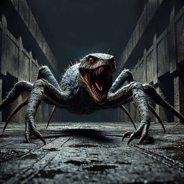 Полуметровая в высоту тварь с телом ящерицы, передвигающейся на восьми паучьих лапах, выползла, да к светляку.