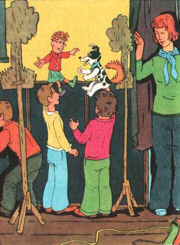 Павлуша вздрогнул, словно проснулся, повёл Ваньку дальше. Хорошо вёл, только дети хохотали даже тогда, когда никакого смеха не предвиделось. Жучок потешал: то оба уха подымал-опускал, то одно топырил кверху, то становился на три лапы, а четвёртую поднимал на куст, то пробовал ходить на передних лапах. Жора, как фокусник, дёргал за какие-то нитки и проволоки, засовывал в Жучка то одну руку – снизу и сзади, то сразу две через живот накрест. Одна вертела голову Жучка, другая – зад и хвост. Только забывал Жора, на какой высоте держать руки: то лишне высоко подымал собачку, то чересчур низко опускал. Наконец он надолго опустил Жучка на все четыре ноги. А замок, который под хвостом, не задёрнул до конца – заело, наверно. И в зале начали стонать и визжать от смеха, аплодировать. Хохотали и мы, хоть артисты не должны смеяться, как бы ни было смешно.