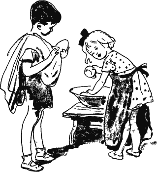 — Теперь и ты надень передник! — потребовала она. Ничего не поделаешь, пришлось и Жене устроить себе что-то вроде передника из кухонного полотенца. И это опять было правильно, потому что при мытье было много брызг.