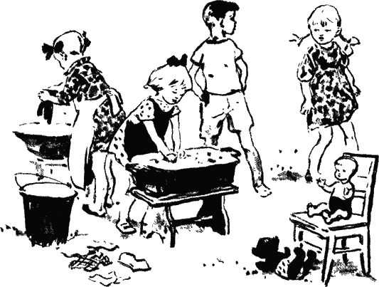 Девочки опять взялись за стирку, но стирать было уже не так весело. После ссор весело не бывает.