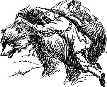 В этот момент что-то громадное протиснулось между ними. С треском ломалось дерево. Оба охотника инстинктивно вцепились в густой мех Мистера Джима. Страшный удар потряс хижину, и Мистер Джим кинулся вперёд. Он вышиб дверь, как будто это была спичечная коробка, и выпрыгнул наружу.