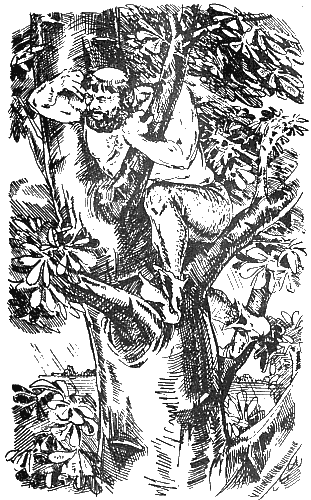 Так взбирался он выше и выше, пока верхушка дерева не заходила под его тяжестью, как тонкая былинка. Отсюда он увидел перекрёсток и гонца, подъезжавшего к тому месту, где раздваивалась дорога.