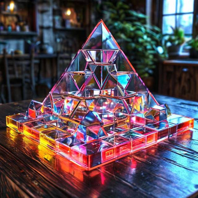 Пирамида на столе блестит, почти как хрустальная.