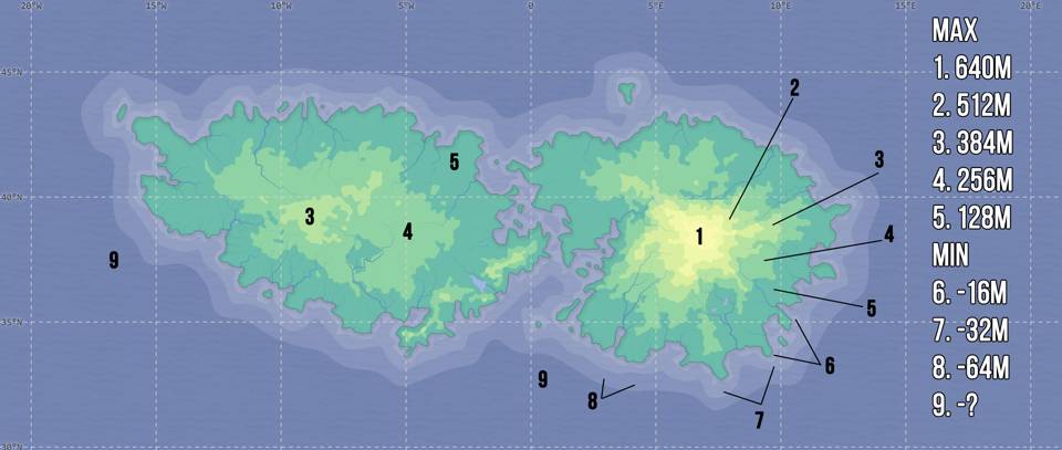 Каждый из этих островов примерно в три раза больше Великобритании, но несколько меньше Гренландии. Западный остров Рем более пологий: высота там достигает максимум в четыреста метров над уровнем океана, пиковая высота на острове Ромул находится на уровне шестьсот пятьдесят метров. Острова располагаются на северной широте от тридцати градусов до сорока пяти градусов и от пятнадцати градусов западной до пятнадцати градусов восточной долготы. Площадь Ромула составляет около одной целой и трех десятых миллиона квадратных километров. Площадь Рема составляет около одной целой и семи десятых миллиона квадратных километров. Итого суммарная площадь братских островов вместе с мелкими спутниками составляет более трех миллионов квадратных километров.