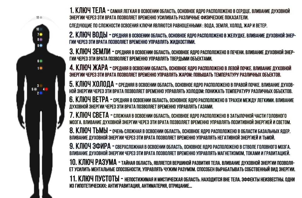 1. Ключ Тела — самая легкая в освоении область, основное ядро расположено в сердце. Вливание духовной энергии через эти врата позволяет временно усиливать различные физические показатели…