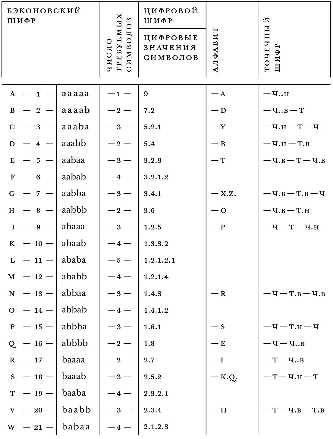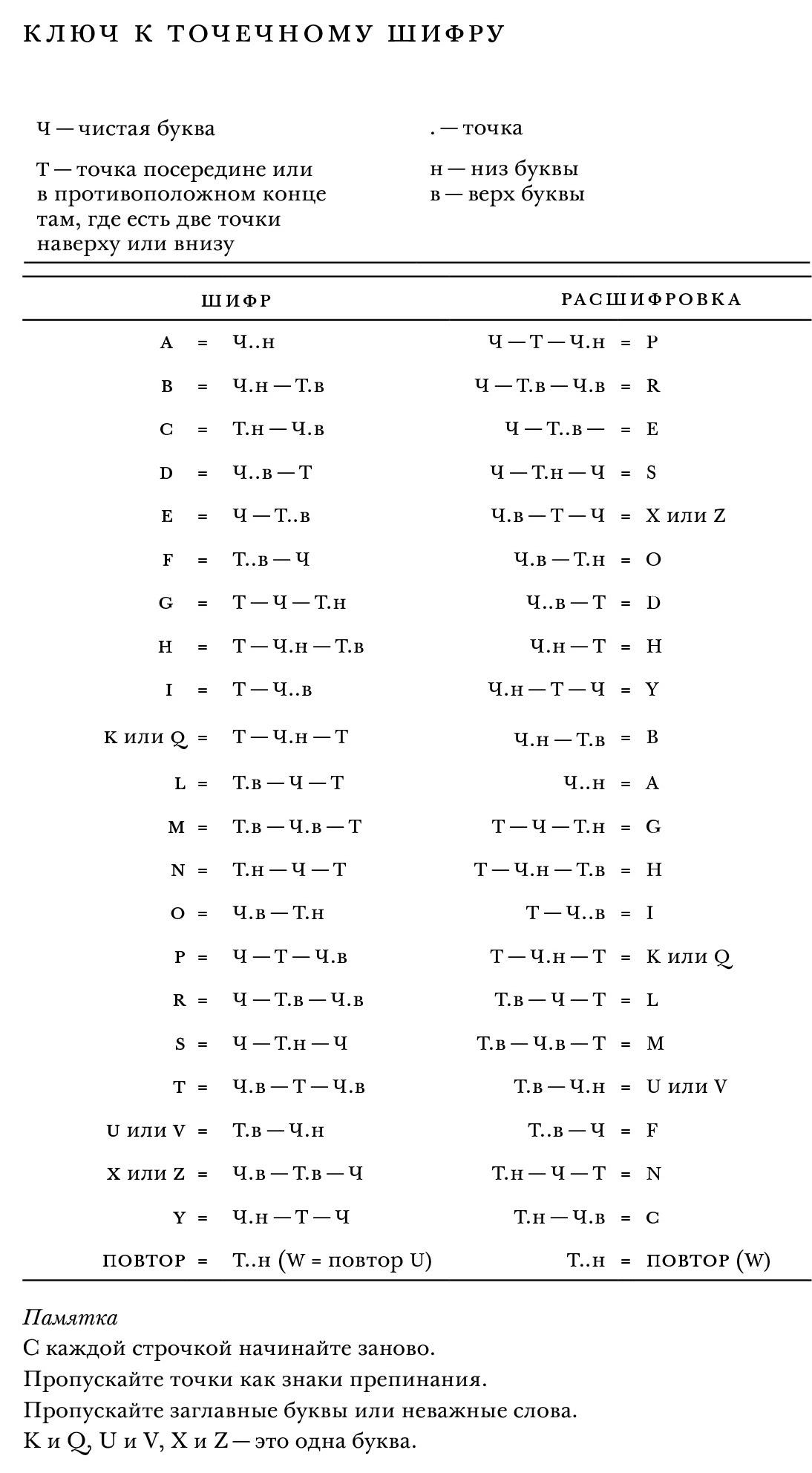 ПРИМЕЧАНИЕ: когда внизу или вверху буквы стоит две точки, точку в теле буквы, обозначающую «b», можно ставить на другом конце. Это поможет запутать постороннего, не смутив опытного расшифровщика.