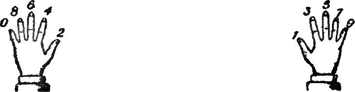 ЛЕВАЯ рука, начиная с большого пальца, обозначает ЧЕТНЫЕ цифры.