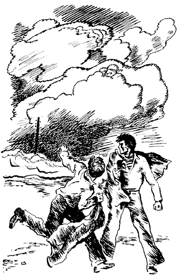 Пока я добежал до Фомы, море уже было в полукилометре. Несколько драгоценных секунд потратил на то, чтоб разбудить Фому. Всклокоченный, осовелый, он стоял, широко расставив ноги, и, выпучив глаза, смотрел, как море шло на него. Ветер трепал его волосы, вздувал пузырём рубаху.
