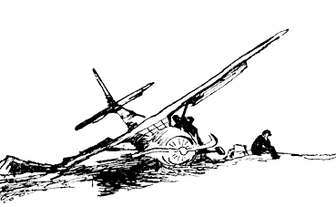 Остановились, только добежав до крылатой машины. Здесь нас охватила робость. Лиза крепко вцепилась в мою руку. Мы оба тяжело дышали, не в силах выговорить ни слова. Пилотов оказалось двое. Один, задумавшись, сидел прямо на земле, он не обратил на нас никакого внимания. Другой возился в искалеченном самолёте, выгружая оттуда какие-то свёртки. Он ругался и охал, но, увидев нас, выпрямился и не без удивления приветствовал поднятием руки.