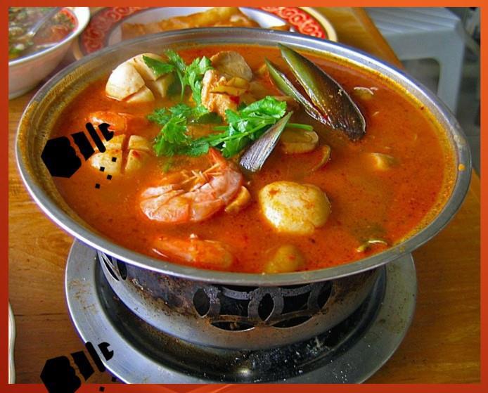 ? Том Ям (Tom Yum). Удивительной особенностью Том Ям стало сочетание сразу четырех вкусов – острого, сладкого, кислого и соленого. За эту феерию отвечает множество экзотических ингредиентов, в числе которых лемонграсс (лимонный сорго), корень галангала (родственник имбиря), огненный чили, лаймовый сок и листья (каффир), рыбный соус.