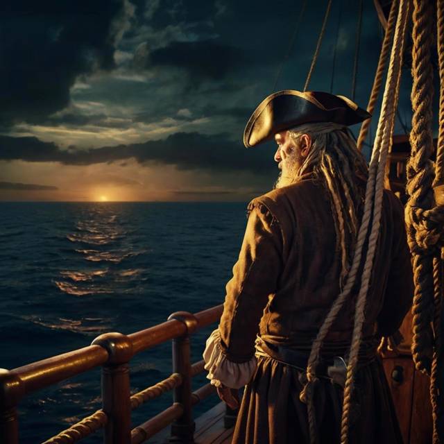 Вечер опустился на «Грозу Морей» быстро, как это обычно бывает в тропиках. Солнце стремительно скатилось за горизонт, окрасив небо в пурпурные тона. Палуба постепенно затихла. Команда, изрядно набравшись рома из «отсутствующего третьего ящика», угомонилась. Нет, конечно, отдельные личности еще пытались тихо петь песни и, но делали это как-то вяло, без прежнего задора. Большинство же пиратов, осоловевшие от выпитого, разбрелись по своим углам, кто-то спал прямо на палубе, подложив под голову свернутый парус, кто-то храпел в гамаке, кто-то, обнявшись с бутылкой, бормотал что-то невнятное.