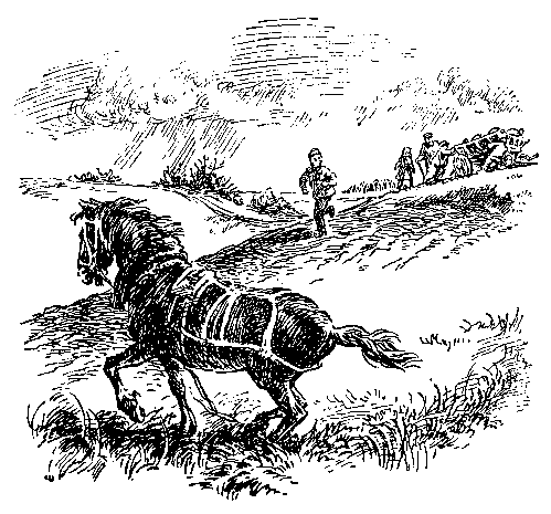 Санька бросился в поле, но Лиска была хитра и злопамятна. Она делала вид, что всецело занята травой, но, как только рука Саньки протягивалась к уздечке, шарахалась в сторону и убегала. Только минут через сорок, прижав Лиску к речной заводи, Саньке удалось словить ее.