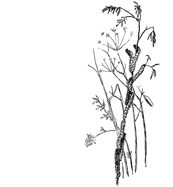 Мне не пришлось долго заниматься поисками. На серые полосы паутинных дорожек я натолкнулся очень быстро. Они почти всегда начинались с какого-нибудь небольшого кустика. Здесь, оказывается, произошло пробуждение гусеничек, выход их из яичек и первые солнечные ванны. Гусенички, а их было по двести-пятьсот штук, все потомство одной бабочки-матери, родные братья и сестры, тут же питались на кусте и линяли. Многочисленные серые сморщенные шкурки с блестящими чехлами головок были раскиданы по паутинной ткани.