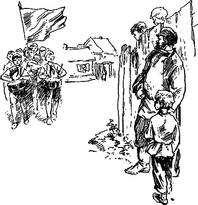 А в самый канун Первого мая пионеры пришли к нам в школу. Их было совсем немного, человек десять. Они прошли мимо нас, поднялись на крыльцо и стали, сбившись в одну тесную кучку.