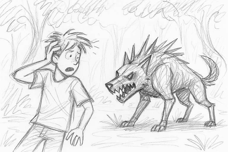 Четыре таких же существа медленно выходили из-за деревьев, окружая его плотным кольцом. Их оскаленные пасти демонстрировали ряды острых, явно не собачьих зубов.