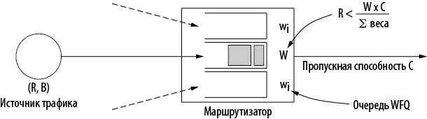 Илл. 5.31. Гарантии пропускной способности и задержки с использованием маркерных ведер и WFQ
