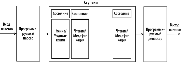 По сути, OpenFlow является очень ограниченным интерфейсом. Он не был рассчитан на гибкое управление сетью. Скорее он стал удобным сиюминутным решением, разработка которого была обусловлена рынком. Сетевые устройства уже имели в своих коммутаторах таблицы сопоставления на базе троичной ассоциативной памяти. Прежде всего OpenFlow был инициативой по созданию интерфейса для этих таблиц, чтобы сторонние программы могли производить в них запись. Вскоре исследователи сетевых технологий начали задумываться о проектировании аппаратных средств для обеспечения более гибкого управления плоскостью данных. В следующем разделе мы расскажем, как прогресс в области программируемого оборудования привел к повышению степени программируемости самих коммутаторов.