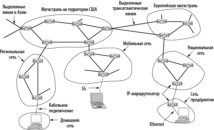 Илл. 5.46. Интернет представляет собой набор соединенных друг с другом сетей