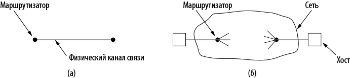 Однако у этих протоколов также имеется множество существенных различий, из-за разных условий, в которых они работают (илл. 6.7). На канальном уровне два маршрутизатора общаются напрямую по физическому каналу (проводному или беспроводному), тогда как на транспортном уровне физический канал заменен целой сетью. Это различие сильно влияет на протоколы.