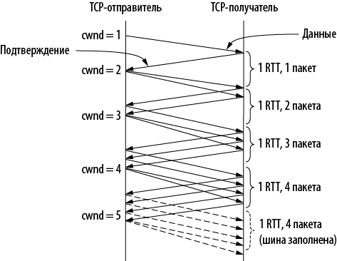 Илл. 6.45. Аддитивное увеличение при начальном размере окна в один сегмент