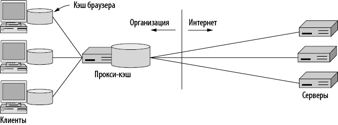 Илл. 7.44. Прокси-кэш между веб-браузерами и веб-серверами