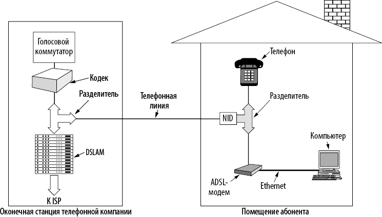 Илл. 2.30. Типовая конфигурация оборудования ADSL