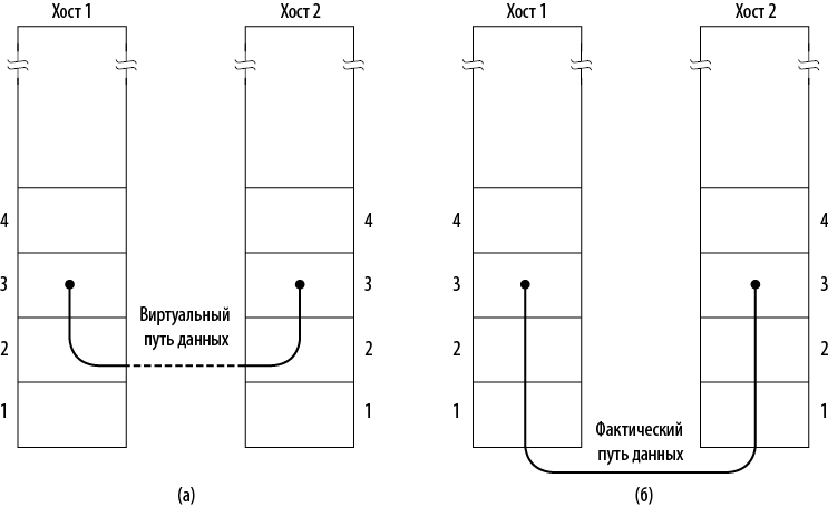 Илл. 3.2. (а) Виртуальное соединение. (б) Реальное соединение
